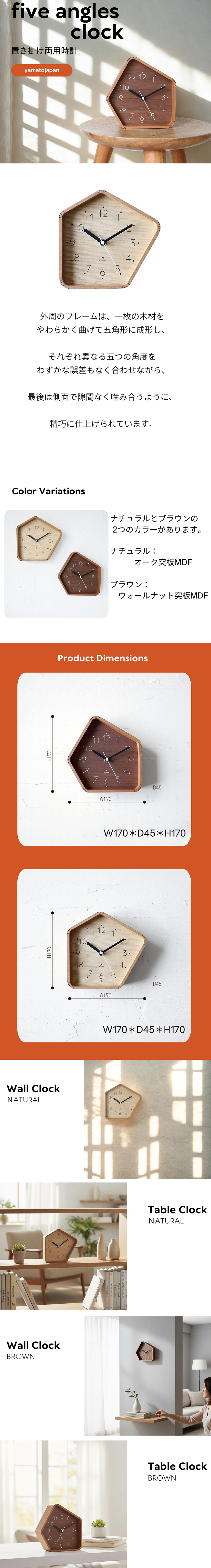 five angles clock  木製  掛け置き両用時計  yamatojapan